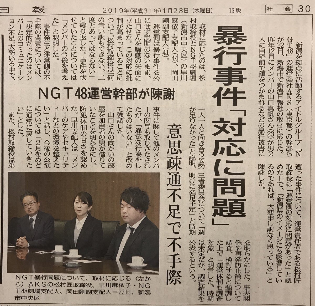 新潟日報にはまず今村連れて来いと詰めて欲しかった